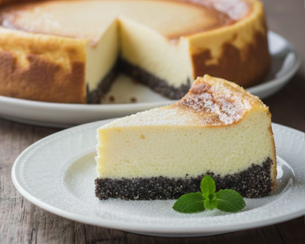 Low Carb Käsekuchen mit Mohn-Boden